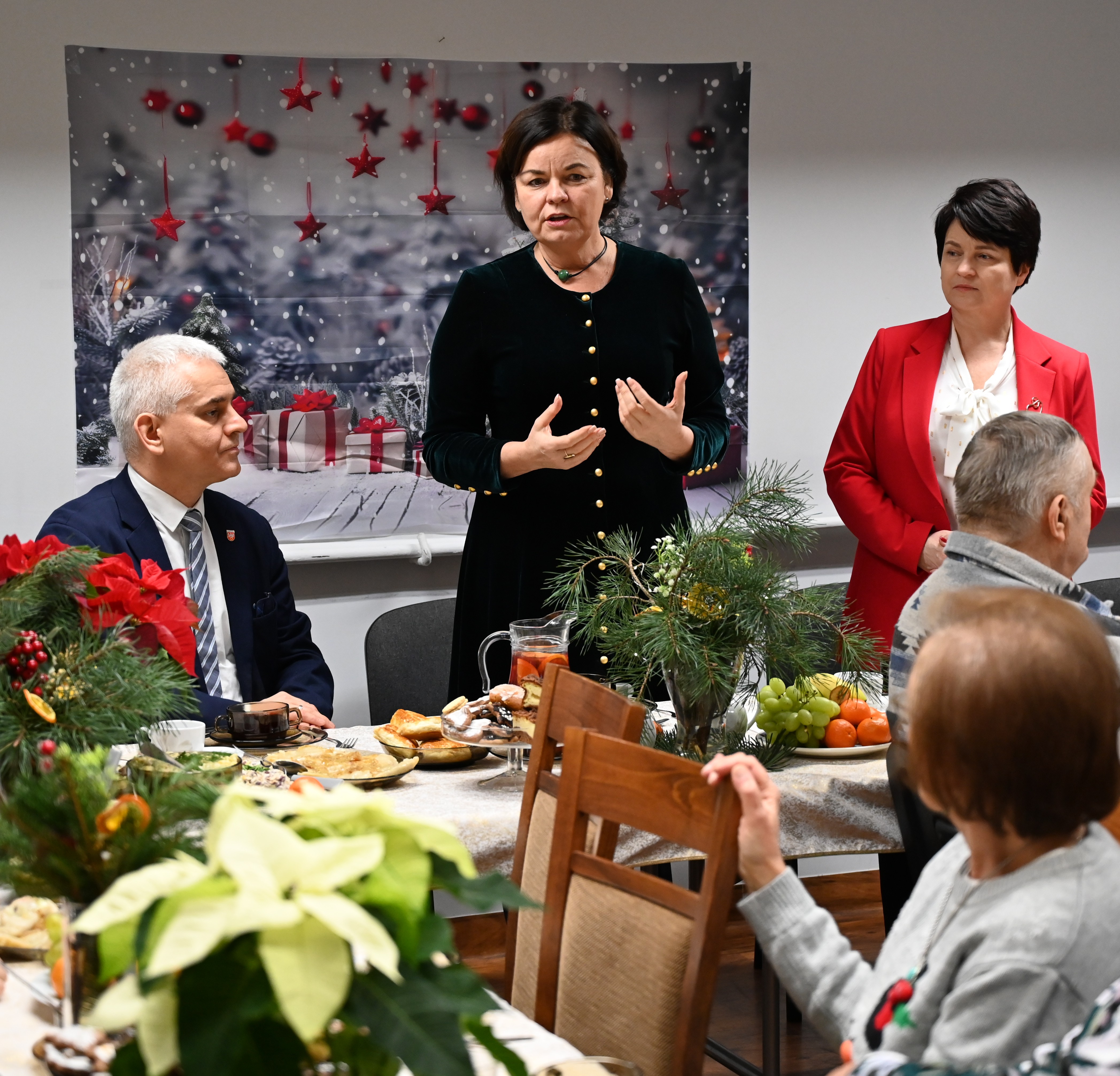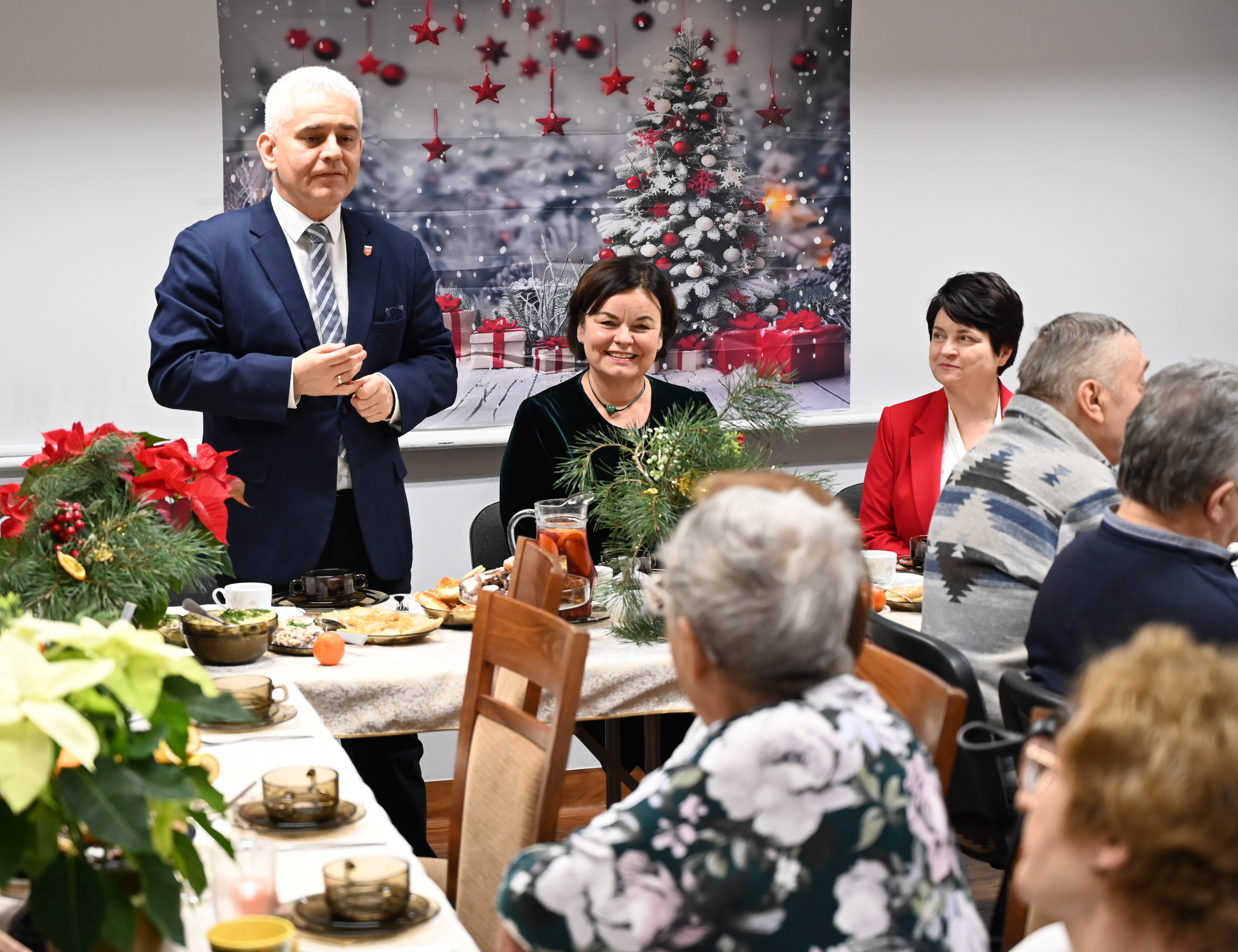 - Dziękuję państwu za cierpliwość i wyrozumiałość, a pani prezydent i pani dyrektor za współpracę i włączenie tego miejsca w struktury Miejskiego Ośrodka Pomocy Społecznej. Dzięki temu możemy się spotkać przy wigilijnym stole i razem powspominać. Życzę państwu na święta i nowy rok spokoju i zdrowia ile wlezie oraz tego, żeby więcej panów uczestniczyło w waszych aktywnościach, bo dzisiaj panie są w przeważającej większości – powiedział starosta pilski Rafał Zdzierela.