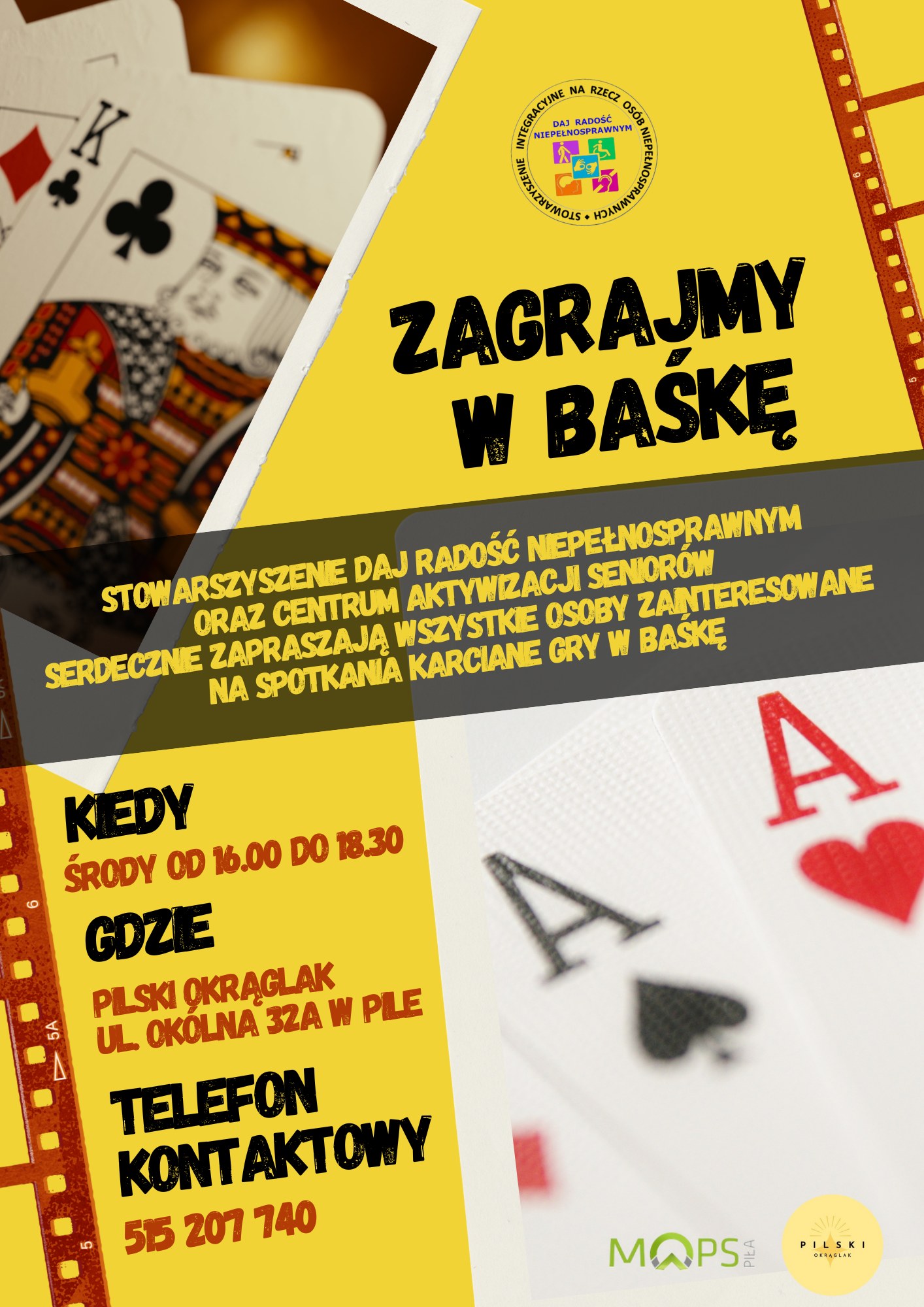Zagrajmy w Baśkę; Pilski Instytut Integracji i Edukacji „Okrąglak”, ul. Okólna 32A ; każda środa miesiąca, godz. 16:00 – 18:00. Telefon kontaktowy: 515 207 740.