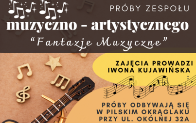 Fantazje muzyczne|Próby zespołu artystyczno-muzycznego; Pilski Instytut Integracji i Edukacji „Okrąglak”, ul. Okólna 32A; Każdy wtorek, godz. od 10:00 do 12:00 oraz każdy czwartek, godz. od 12:00 do 14:00.
